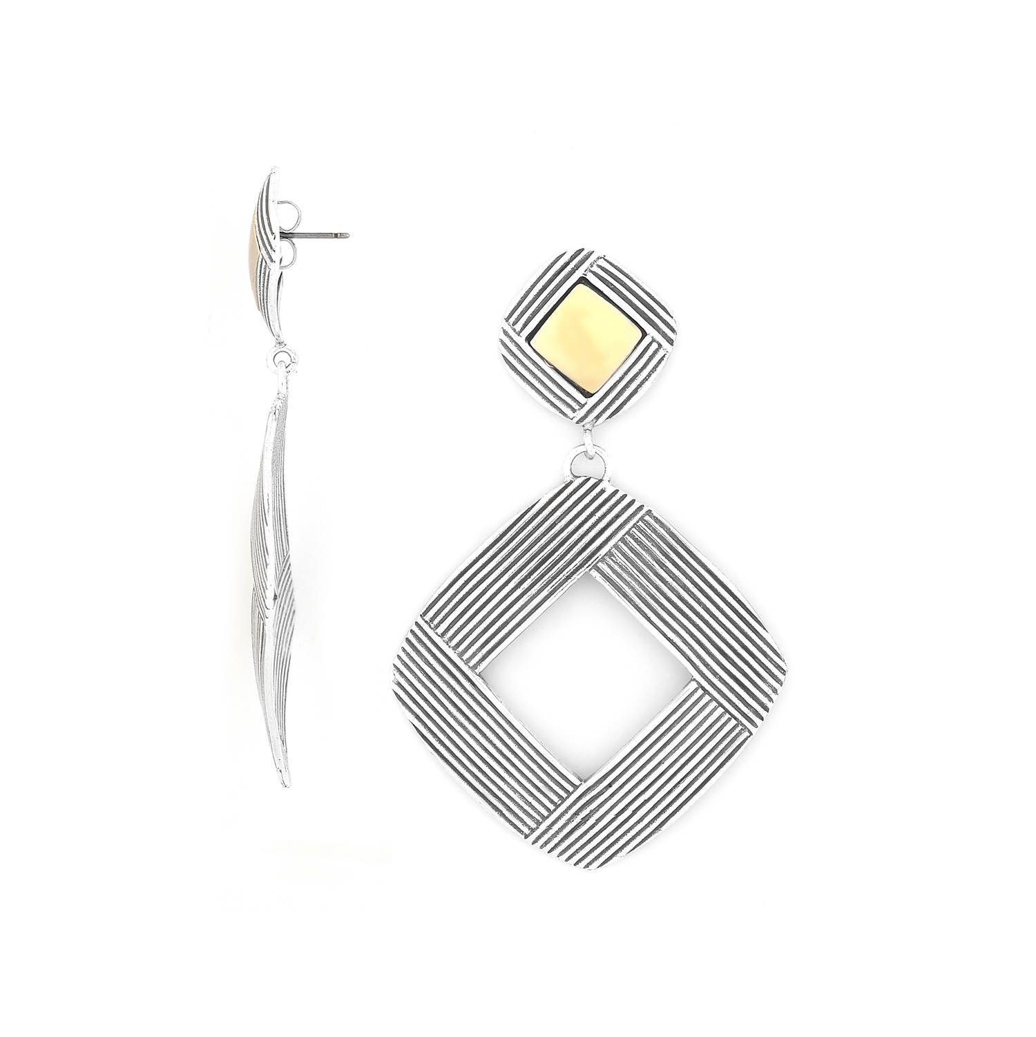 ფრანგული ბრენდი Ori Taos ს ხელნაკეთი საყურე, კოლექციიდან DANDY. სამკაულის ბაზად გამოყენებულია თითბერი, კოლექციაში გამოყენებული ნატურალური მასალები და ქვები: