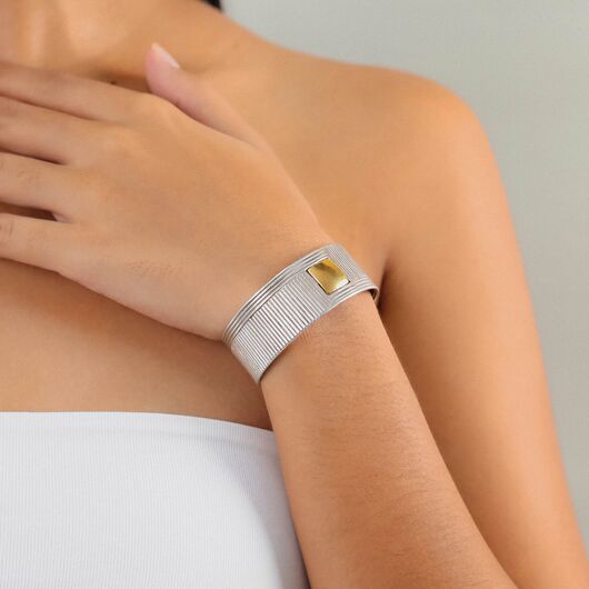 ფრანგული ბრენდი Ori Taos ს ხელნაკეთი სამაჯური, კოლექციიდან DANDY. სამკაულის ბაზად გამოყენებულია თითბერი, კოლექციაში გამოყენებული ნატურალური მასალები და ქვები: