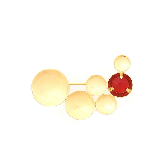 ფრანგული ბრენდი Ori Taos ს ხელნაკეთი ბროში, კოლექციიდან JIMILI. სამკაულის ბაზად გამოყენებულია თითბერი, კოლექციაში გამოყენებული ნატურალური მასალები და ქვები: აქატი, ლაპის ლაზული, თითბერი