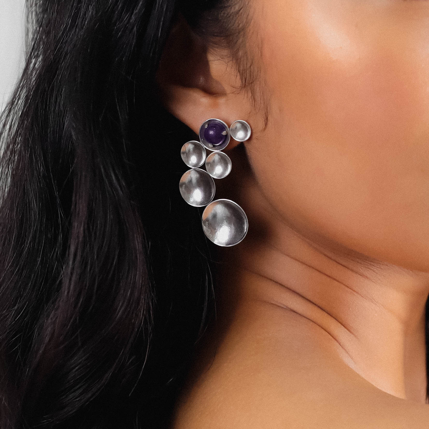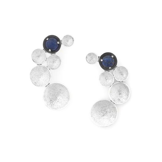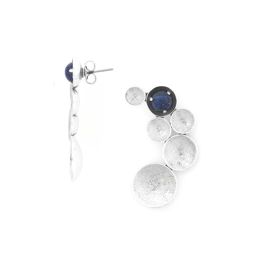 ფრანგული ბრენდი Ori Taos ს ხელნაკეთი საყურე, კოლექციიდან JIMILI. სამკაულის ბაზად გამოყენებულია თითბერი, კოლექციაში გამოყენებული ნატურალური მასალები და ქვები: აქატი, ლაპის ლაზული, თითბერი